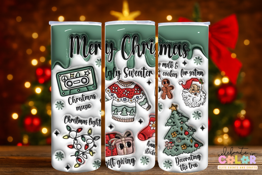Merry Christmas 20oz Tumbler, Holiday Retro Drink Cup with Lid & Straw, Ugly Sweater Christmas Tumbler, Festive Gift for Her