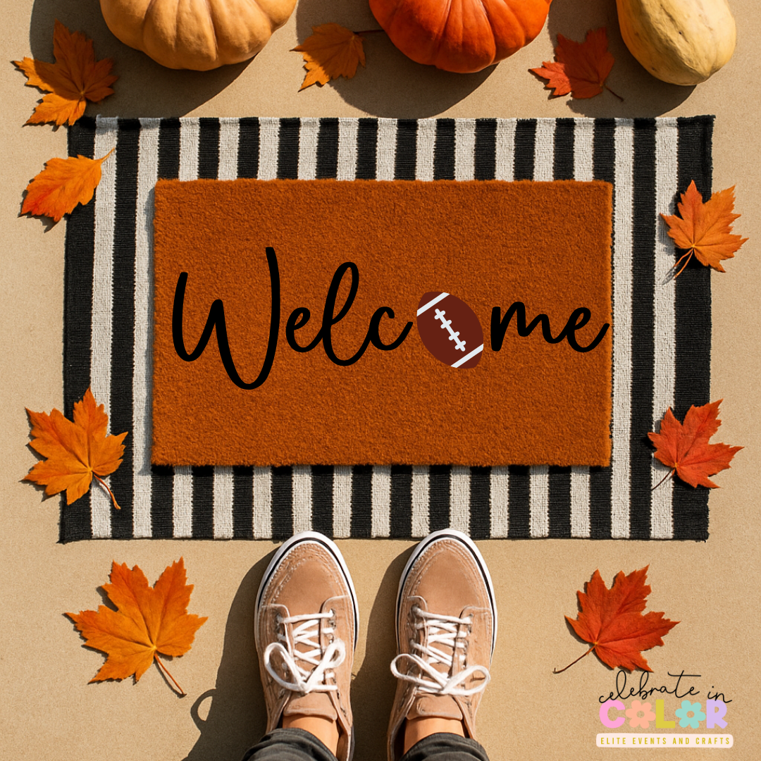 Kick off football season with a touchdown-worthy welcome! This doormat features the word “Welcome” with a football in place of the “o”—perfect for sports fans, tailgaters, or anyone ready to host game day in style. Whether you’re cheering from the porch, couch, or stadium lot, this mat sets the tone before the first kickoff.