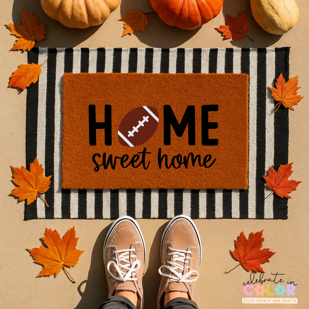 Kick off the season with this cozy “Home Sweet Home” Football Doormat—perfect for sports fans and fall lovers alike! Whether you’re welcoming friends for game day or adding a sporty touch to your autumn porch décor, this mat blends cozy fall vibes with team spirit.