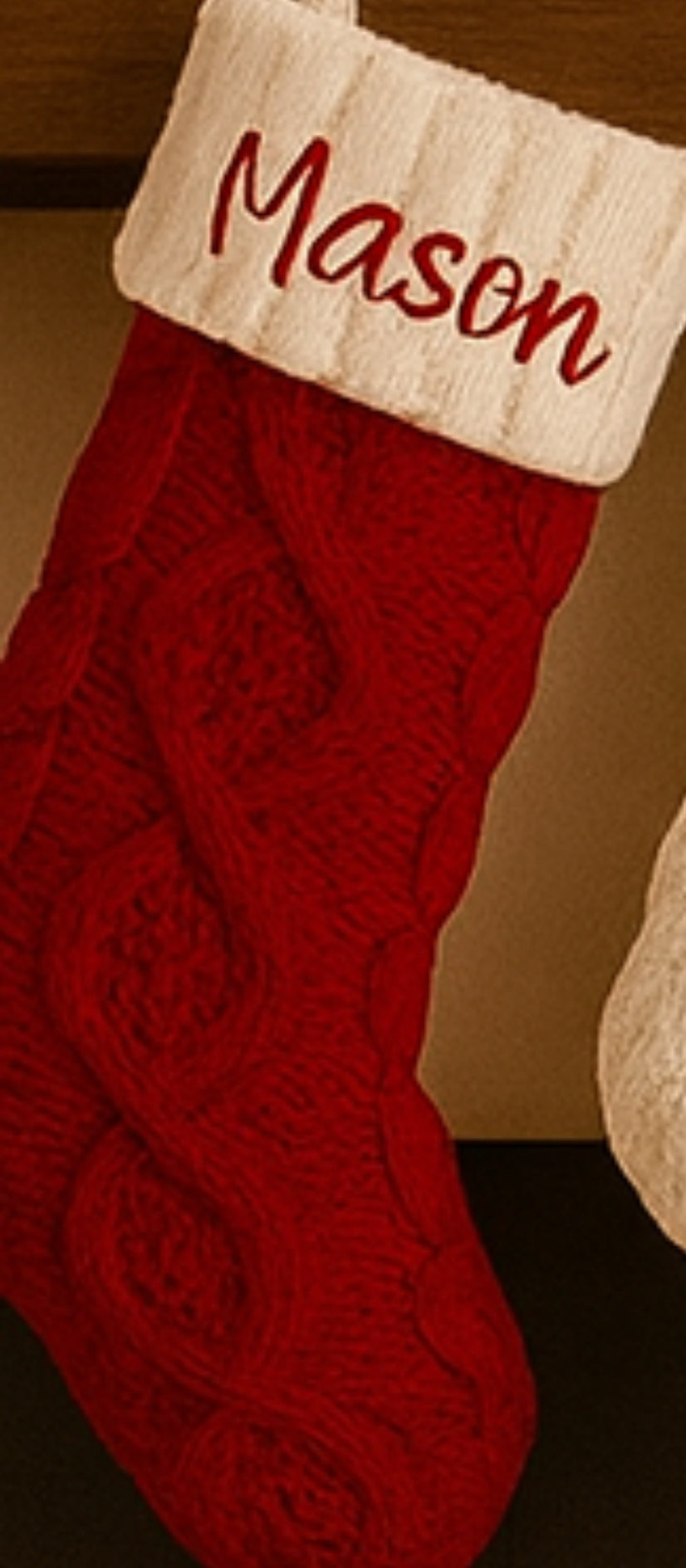 Celebrate the season in style with these Personalized Christmas Stockings — perfect for adding a festive and heartfelt touch to your mantel or holiday display! Each stocking features a soft, knitted texture and your custom name applied in premium vinyl, making it a beautiful keepsake for years to come.